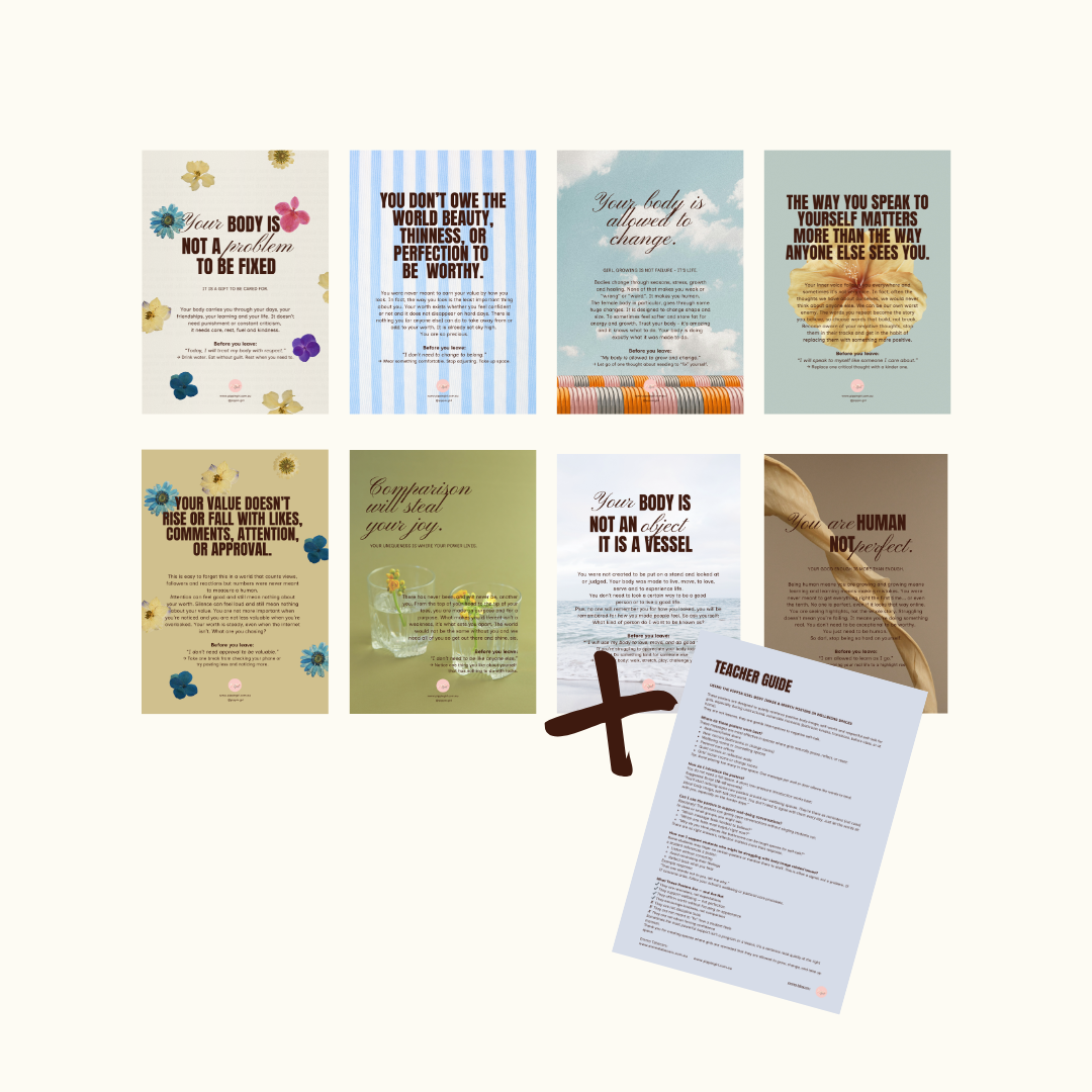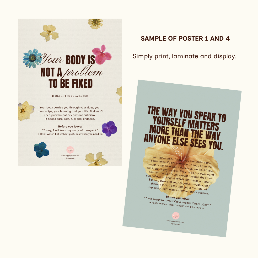This set includes 8 powerful, age-appropriate posters created to gently challenge comparison, perfectionism and appearance pressure. These posters are designed to remind girls that their worth is steady, even on hard days.